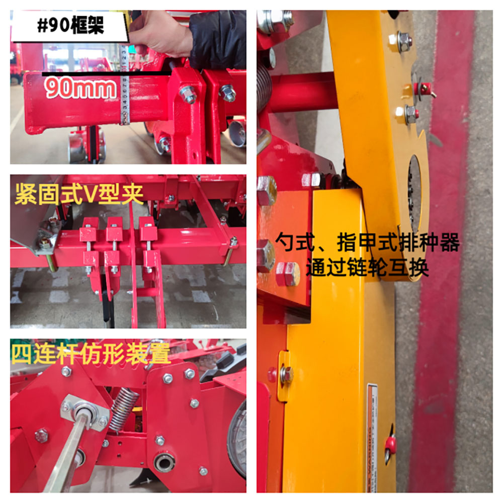 本机具是一款多功能高效专业播种玉米机械, 采用加强型开沟犁体,指夹和勺轮式两选的精量排种器, 可一次性完成 开沟 、施肥 、播种 、覆土 、镇压等工序 。