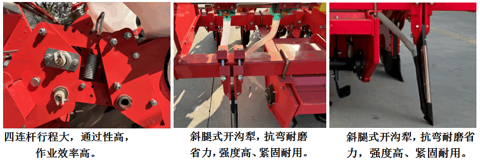 1、整机结构简单,坚固耐用,播种深度稳定,采用8模箱体,动力消耗小。可一次性满足旋耕(大豆)、施肥、开种沟、播种、覆土、镇压等工序,在不影响玉米产量下,能多收200斤大豆;