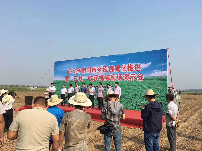 硕果累累的八月,满载着收获幸福的喜悦。由南阳市农业机械化协会主办、卧龙区农业机械化管理局承办的2018年南阳市全程机械化推进暨“三秋”收获机械现场演示会在南阳市卧龙区潦河镇吴集村召开。