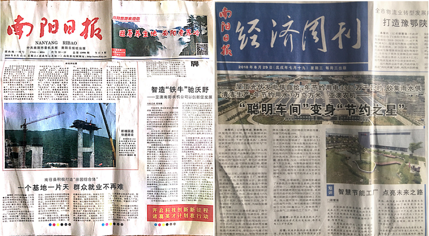 从智能制造到清洁生产、节能减排,一月内《南阳日报》于8月11日、、8月29日连续两次报道壹号娱乐官网,河南卫视《新闻联播》联动报道。