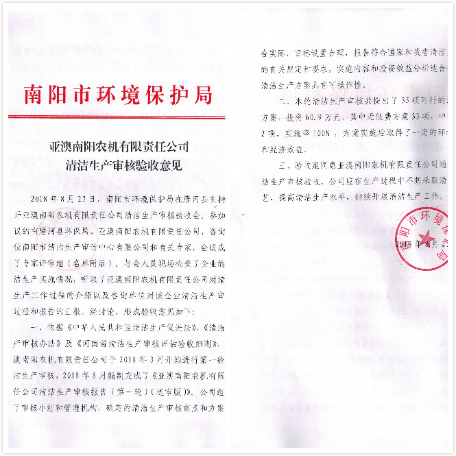 8月23日南阳市清洁生产审计中心携权威认证专家对我公司清洁生产情况进行审核,会议上,专家对我公司清洁生产情况给予高度评价,一致认定壹号娱乐官网通过清洁生产审核,同时也为公司后续清洁生产提出一定要求及需改进的地方。我公司副总表示,接受专家们的建议,后续公司在清洁生产方面也将不断改进。