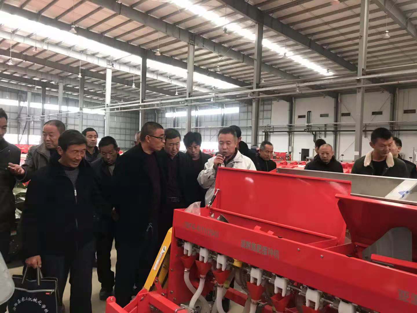 2018年11月16日驻马店市农机局及合作社来我公司参观,公司销售部经理王红卫、王显朝陪同,实地考察耕播机具的生产制造过程。