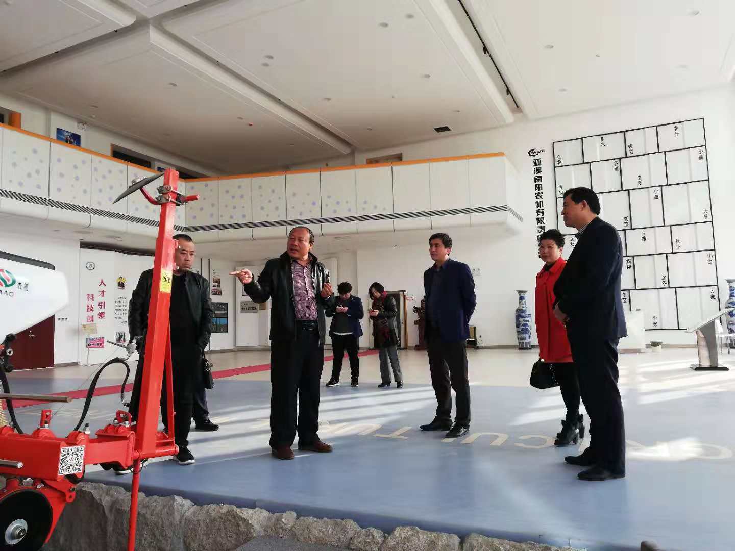 郭总首先向李军副主席一行介绍了展厅内展示的代表性机具,李军副主席指出,这些机具刷新了我对农耕机具的认知。