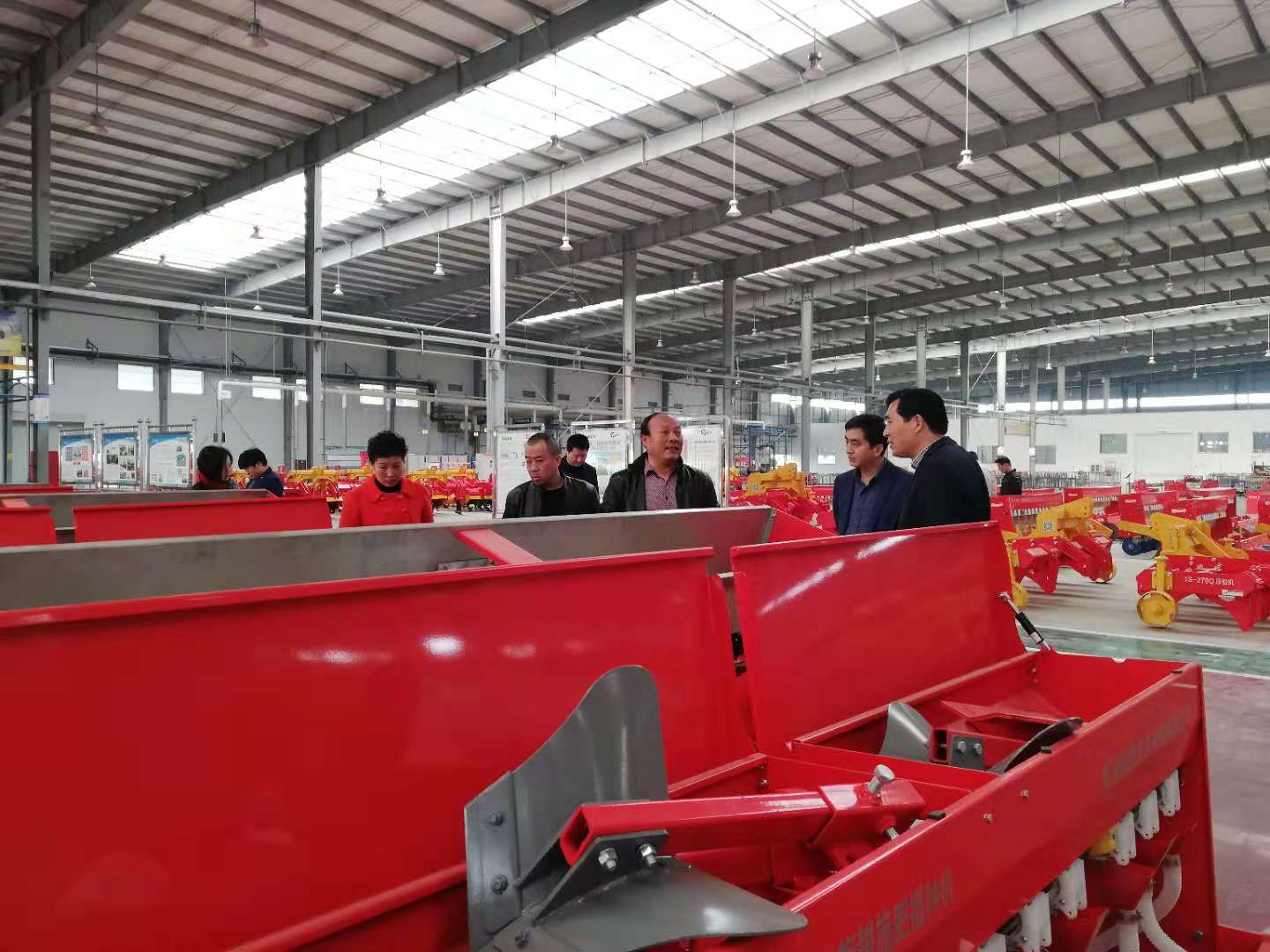 在成品展示区,关于研发创新方面,郭总把2017年公司针对南阳地区的大面积规模化种植作物而研发的小麦花生两用精量播种施肥机作了介绍,把产品特点及功能作用都作了详细的讲解。