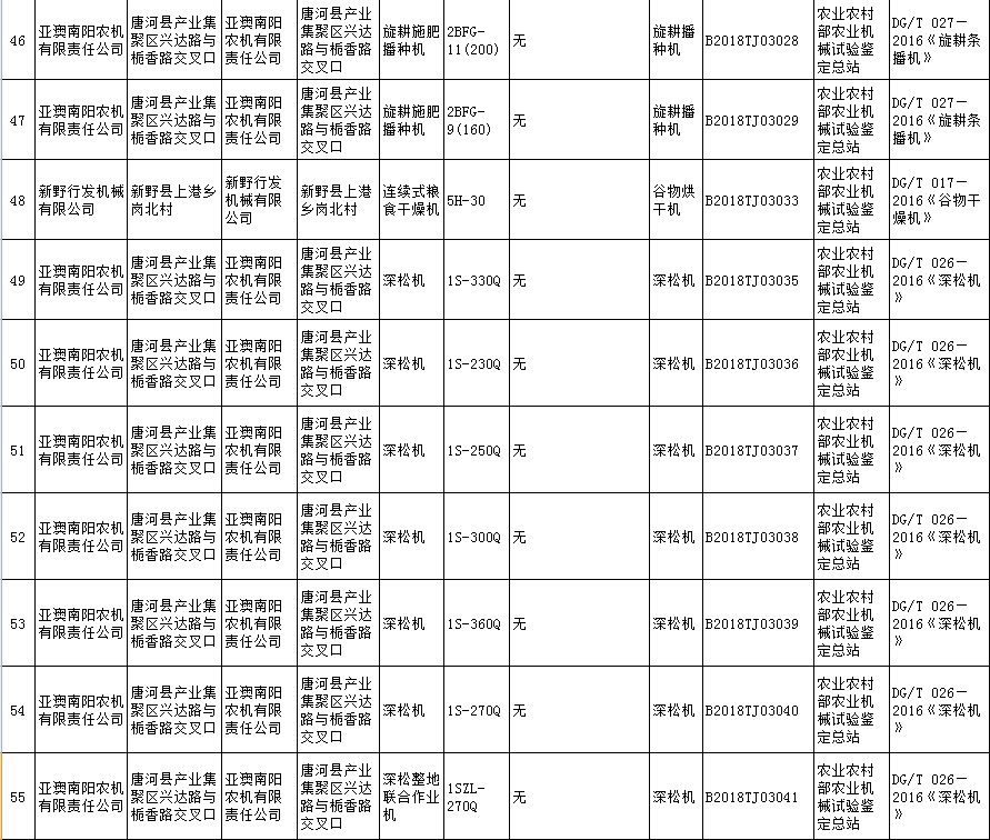 根据农业部农业机械试验鉴定总站2018年第五批部级农机推广鉴定结果的公示,9个型号的机型全部通过农机鉴定总站的批准。