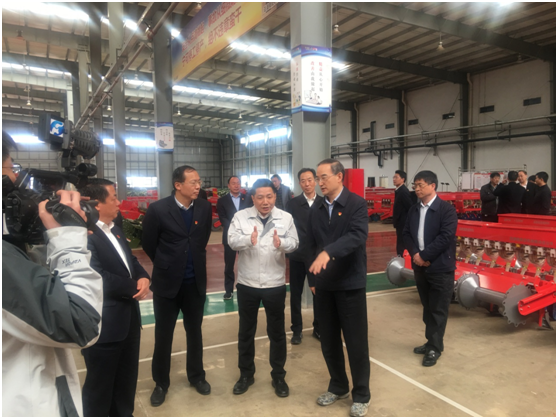在唐河县的壹号娱乐官网有限公司,黄省长一行实地察看了企业生产现场,了解企业生产经营、产品保护性耕作,防止耕作过程中的秸秆焚烧和扬尘、技术创新等情况。对该公司的智能激光切割、自动化机器人焊接及PLC粉体涂装生产线,环保除尘系统详细查看,边听边问,尤其对壹号娱乐官网发展绿色清洁生产建设的粉体涂装产线,和屋顶光伏电站、雨水收集循环利用大手笔投入尤为赞叹。听史炳哲总经理汇报壹号娱乐官网涂装设备是目前先进的环形磁芯的粉体涂装线,其采用PLC人机界面控制系统,使各工序自动化运行,所有工序一次性完成,比传统振动双面烘烤涂装的品质更加优良,更节省涂料,还可实现废料回收再利用,并实现了全自动生产涂装,高效节能。