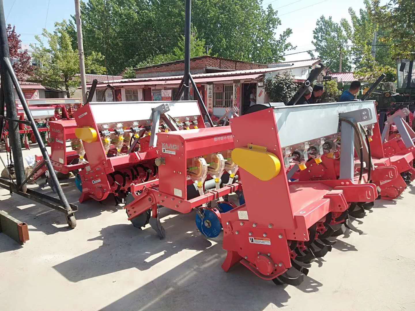 这款机具集旋耕、施肥、播种为一体。可用来播种小麦、花生、高粱、油菜等多种农作物。农艺顺序为(单旋耕)-施肥-旋耕-整平-播种-镇压。