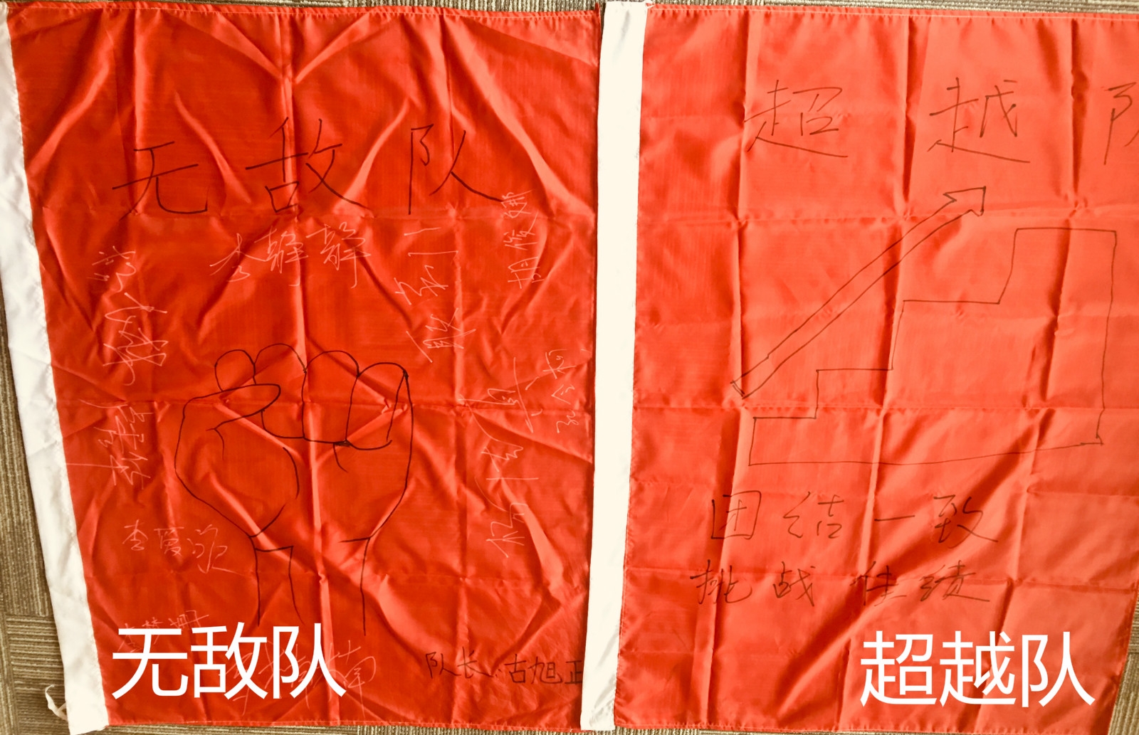 士气展示,每组在队长的带领下,绘制队旗队呼,并列队进行展示,在展示的过程中,在每一个队员的配合下,整齐划一,士气满满。
