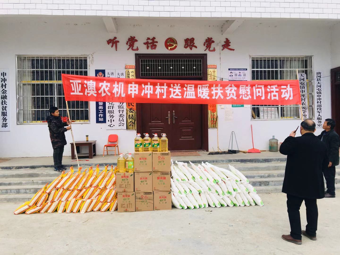 临近春节,2020年 1月4日在公司总经理的授意下,由公司总经理助理郭靖亲率公司员工带着米、面、油等生活物资,到申冲村开展送温暖扶贫慰问活动。