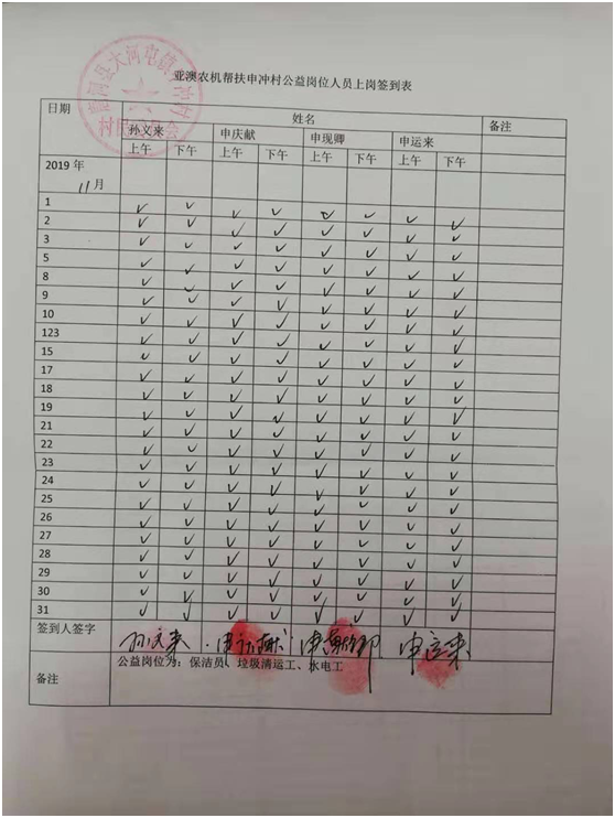 除此之外,我公司联合村委会照顾一些特别贫困但有行动能力的老人为村部垃圾清运、水电维修、村落清洁等,并为此购买公益岗位,每月定期给这些公益岗位发放工资500元/个月,以确保他们的正常生活。这一决定从2018年5月至今已经实行了一年半时间,累计发放公益岗位工资3.1万元。