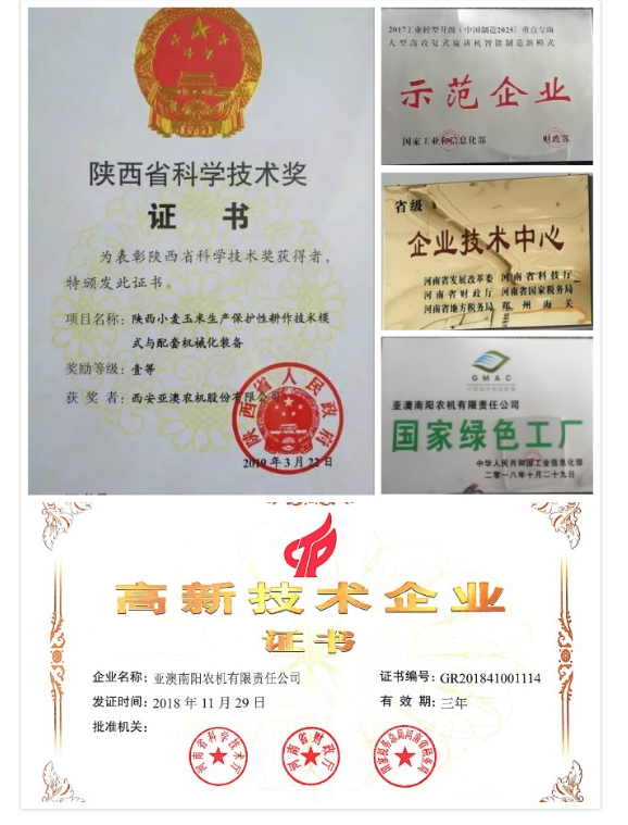 壹号娱乐官网坚持“产品就是人品、内在是我心、外在是我脸”的品质原则,多功能变速旋耕机、旋播施肥机、联合耕整机、双轴灭茬机、精量免耕播种机、深松机等产品在耕整机械(主机配套40-300马力)领域处于行业前列, 累计取得自主专利78项。2018年“亚澳”商标获得中国驰名商标,产品多次被中国农机化协会、中国农业机械流通协会、中国农业机械工业协会授予“AAA级信用企业”、“技术进步奖”、“产品创新奖”、“全国农机用户满意品牌”、“最具影响力品牌”,被国家相关部委单位授予农业部科技进步三等奖、星火计划金奖、西安市科技进步一等奖、陕西省行业之星企业,“专精特新”中小企业,南阳市级科技百强企业等多项殊荣;国家型高新技术企业,在农机行业中具有较高的美誉和知名度,得到了社会的广泛认可。