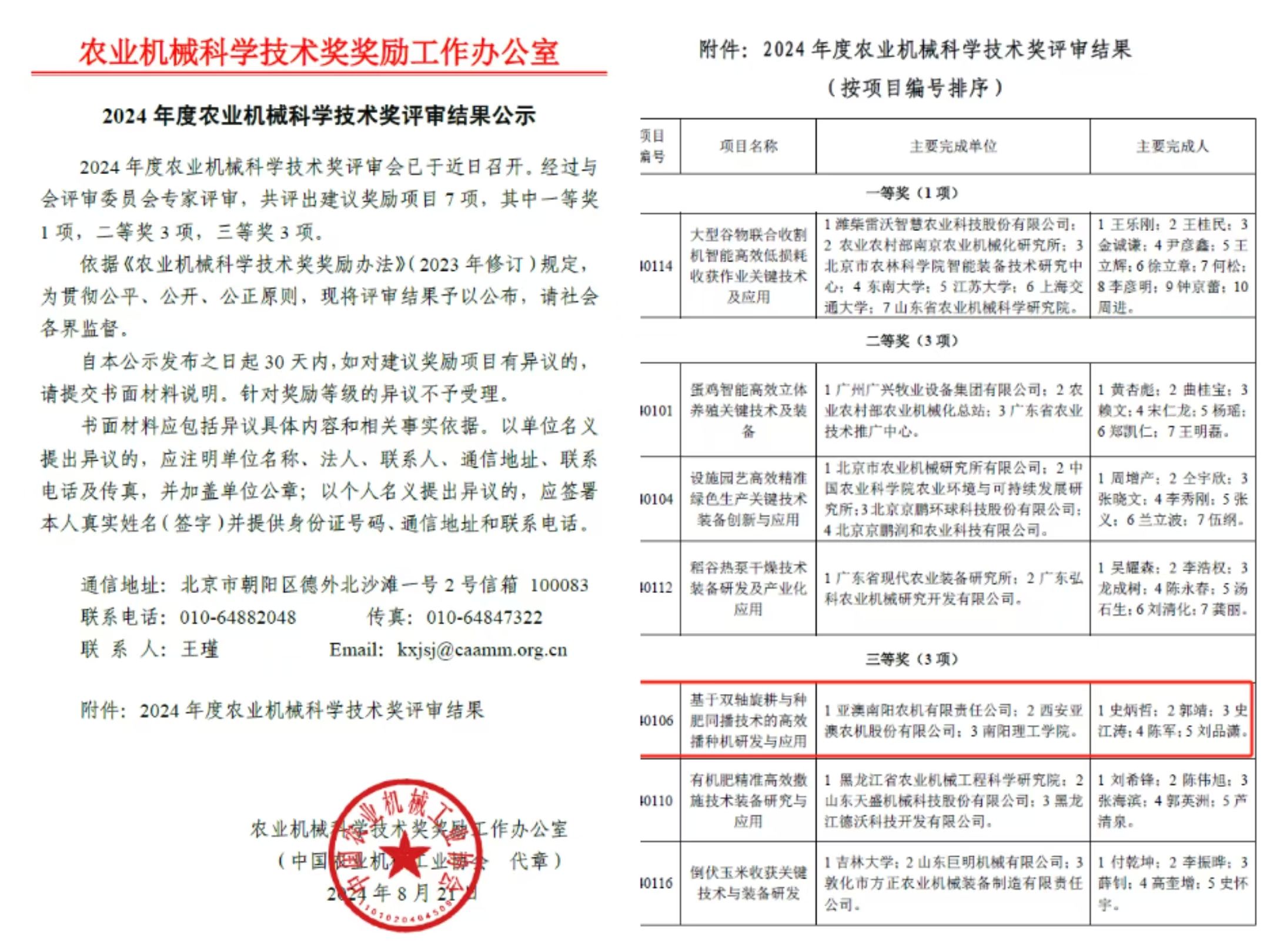 在科技与农业深度融合的时代浪潮中,一则振奋人心的喜讯传来 ——壹号娱乐官网成功荣获农业机械科学技术奖!