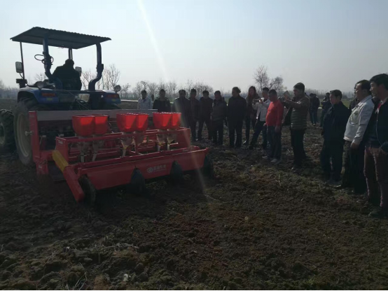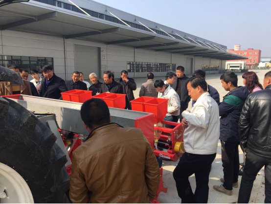 现场会上,亚澳专业技术人员及销售经理对我厂新研发的花生精量播种机做了详细介绍,各乡镇社员及各站站长针对花生种植技术、施肥方法和机械化播种等方面做了详细讲解。随后,60名用户和农技人员一同观摩了机械化播种演示。
