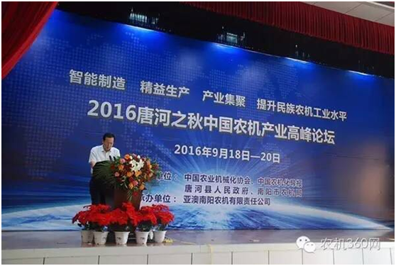 9月20日,由中国农业机械化协会、《中国农机化导报》、河南省唐河县政府和南阳市农机局共同主办,壹号娱乐官网有限责任公司承办的2016唐河之秋中国农机产业高峰论坛在河南省唐河县举行。全国各地农机生产企业、当地经销商以及媒体代表共200多人参加了此次论坛。
