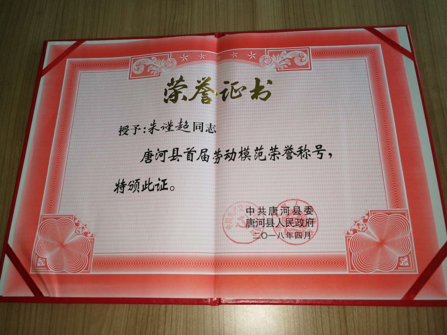 在“五·一”来临之际,唐河县委、唐河县人民政府为首届劳动模范颁发了荣誉证书及奖章。亚澳南阳公司朱谨超同志喜获殊荣。