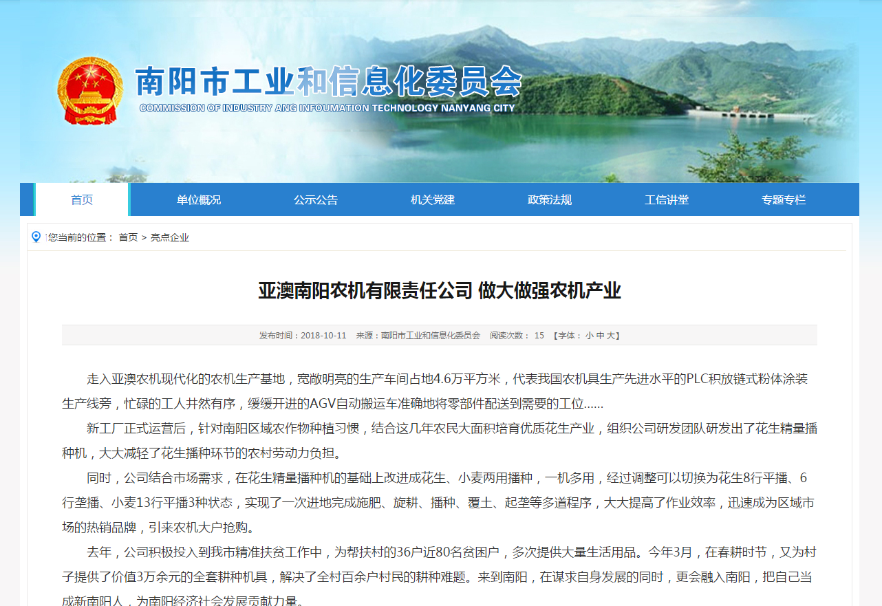 去年,公司积极投入到我市精准扶贫工作中,为帮扶村的36户近80名贫困户,多次提供大量生活用品。今年3月,在春耕时节,又为村子提供了价值3万余元的全套耕种机具,解决了全村百余户村民的耕种难题。来到南阳,在谋求自身发展的同时,更会融入南阳,把自己当成新南阳人,为南阳经济社会发展贡献力量。
