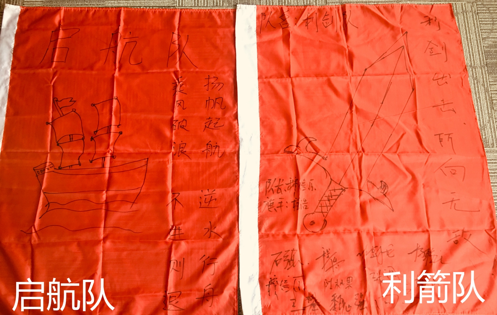 士气展示,每组在队长的带领下,绘制队旗队呼,并列队进行展示,在展示的过程中,在每一个队员的配合下,整齐划一,士气满满。