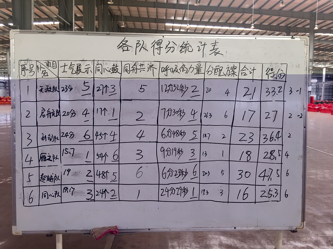 通过此次团队建设训练,各组都能看到自身的优劣势,同时也感受到了合作与沟通的重要性,这为以后的工作奠定了很好的基础。