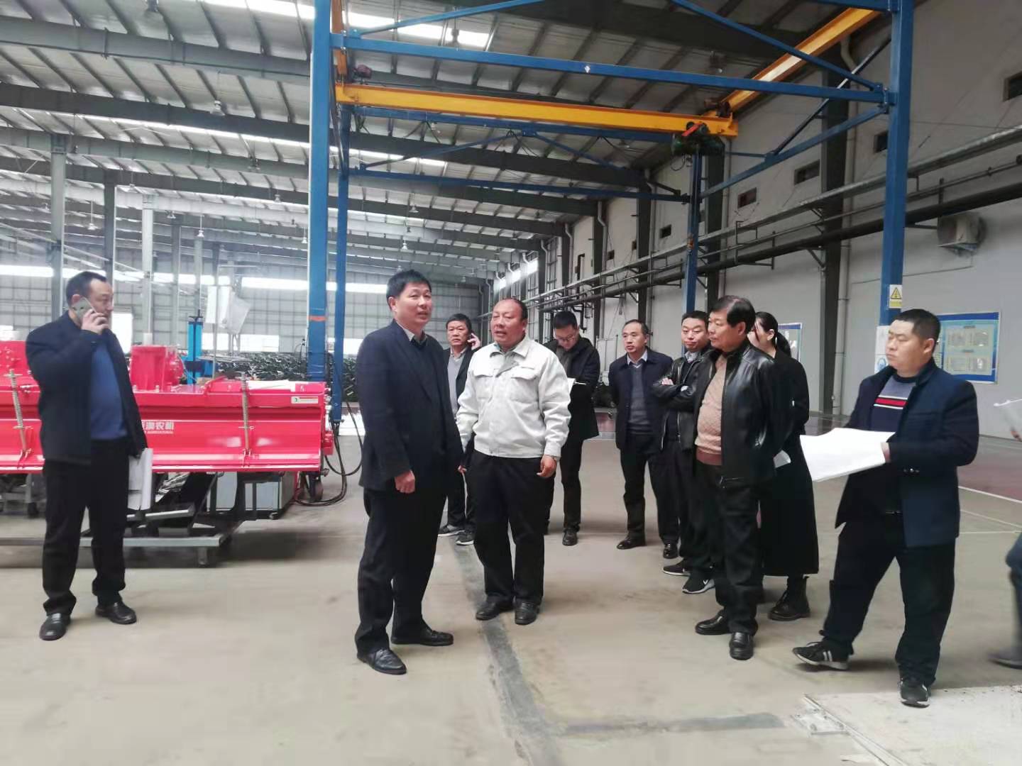 2019年11月19日上午,南阳市市委办副主任赵玉云携市发改委副调研员马秋柏等一行在唐河县工信局领导的陪同下莅临壹号娱乐官网视察亚大型复式旋耕机智能制造新模式项目发展建设情况。