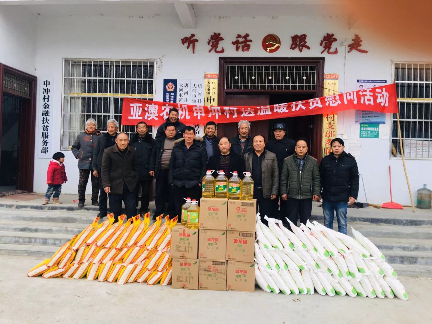 临近春节,2020年 1月4日在公司总经理的授意下,由公司总经理助理郭靖亲率公司员工带着米、面、油等生活物资,到申冲村开展送温暖扶贫慰问活动。