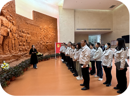 活动现场、各位员工代表手持鲜花列队肃立在庄严的烈士纪念碑前,依次将鲜花摆在纪念碑石阶上,驻足凝视、以寄哀思,随后全体鞠躬、默哀,向革命先烈们致以崇高的敬意、表达无限的缅怀之情。