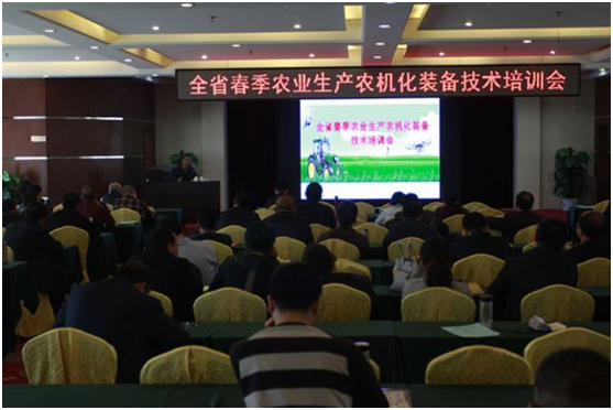 为了贯彻落实全省农机工作会议精神,全面提升我省农机化发展水平,加快丘陵山区农机化技术和主要农作物生产全程机械化的发展。4月23日,山西省农机推广总站在繁峙县组织召开了全省春季农业生产农机化装备技术培训会。全省11个市的农机局分管局长、推广站长、承担2017年现代农机推广项目县农机局局长、推广站长以及部分贫困县的县局财务人员共200余人参加了培训会。省局左义河局长、张本源总工出席会议并致辞。省局计财处秦启福处长、科技处郭海鸿处长;省农机研究院米志峰院长;省新技术服务中心王曦主任也应邀参加了会议。会议由省农机推广总站张玉峰站长主持。
