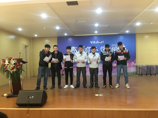 年会初始,总经理史炳哲致新年贺词,并做了2017年年度总结,宣读了2018年度规划。对亚澳全体员工在过去一年中做出的努力和奉献给予了充分的肯定和赞扬。接着由生产主管王红卫和质检作业长朱谨超分别为我们作了2017年工作总结及涂装质量问题分析。最后由总经办郭靖特助宣读了2017年度表彰决定,对优秀员工,优秀班组、市场开发先锋、项目申报、新产品开发等五个奖项,共15人进行了表彰。